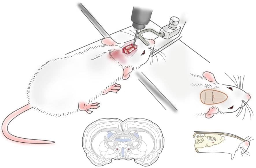The stereotaxic brain surgery is a versatile method for drug delivery, generating lesions,